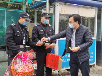 处领导班子及物业公司负责人每到一处都把“元宵快乐”“身体健康”“万事如意”等温馨祝福送给防疫一线的工作人员 ,对他们在疫情防控工作中付出的辛勤劳动表示感谢,同时反复叮嘱:“在严防死守校园的同时,也一定要做好个人防护工作。”随后,处领导和物业公司负责人还来到了西大社区办,向奋战在一线的社区工作者致敬,为他们送上节日的祝福。