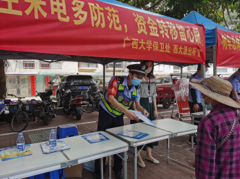 为有效提高我校师生、教工家属及退休人员防诈反诈意识,降低校园电信网络诈骗发案率,切实维护校园安全和社会稳定,4月12日上午,我处联合西大派出所在西校园开展反诈防骗宣传活动,同时进行全民国家安全教育日主题宣传活动。