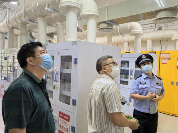 五一假期前,为加强学校安全管理,维护校园安全与稳定,4月26日上午,我校综治办联合西大派出所到相关单位开展危化品安全检查。对相关单位药品试剂、易燃易爆物品的存储情况、日常管理及出入库记录等进行检查。