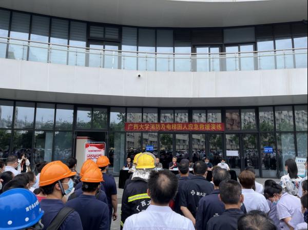为让师生进一步熟悉应急疏散逃生、电梯困人自救互救知识技能,结合2022年全国“安全生产月”主题内容,6月20日下午保卫处联合后勤处、资产经营公司、新大正物业公司、广西欧日电梯服务公司等在大学生活动中心开展消防及电梯困人应急救援演练。
