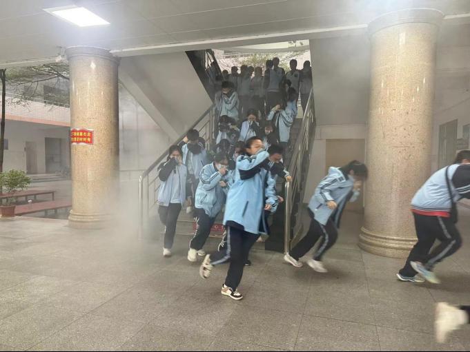 (附中师生参加消防安全疏散演练)