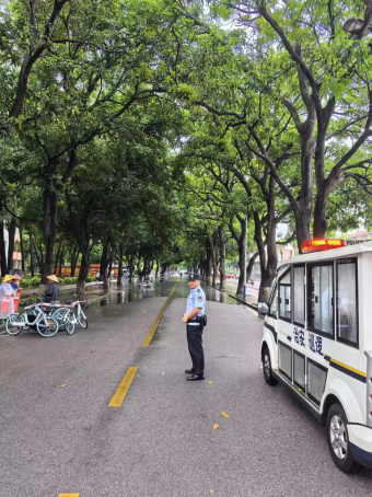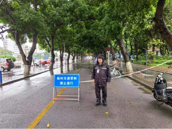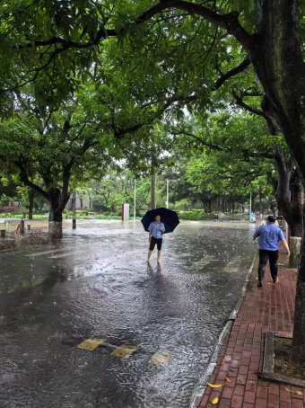 5月19日凌晨4时起,南宁市出现强降雨天气,早上6时30分左右,我校部分区域出现内涝现象。我处闻汛而动,启动恶劣天气应急预案,全体值班人员冒雨对校内各区域进行排查,对内涝路段进行交通管制,及时联系相关单位对内涝区域进行断电,安排值班人员进行值守,指引师生员工避开封控区域,保障道路交通安全有序畅通,确保师生员工生命财产安全。(金中州/文图 吕丽华/校对 沈大盛/审核)
