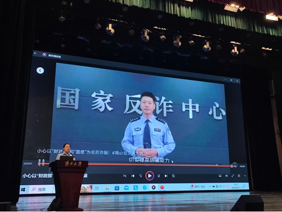 会上,陆莉娜警官结合国家反诈中心反诈宣传视频分析学校近期发生的投资理财、会员退费和续费、冒充客服退款等6种典型案例,分别从认识电信网络诈骗、了解电信网络诈骗套路及如何防范三个方面进行宣讲。