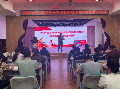 9 月 26 日上午,我处指导第二幼儿园开展消防演练活动,第二幼儿园部分师生以及2024年全区幼儿园安全与应急管理培训班全体学员共计400余人参加。