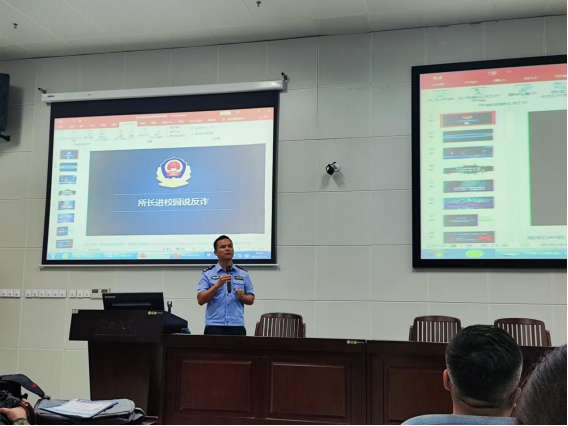 保卫处金中州老师结合我校常发生的电诈典型案例进行剖析,鼓励同学们充分利用班会及时通报我校典型案例,做到时常相互提醒,共同提高识诈防骗意识。