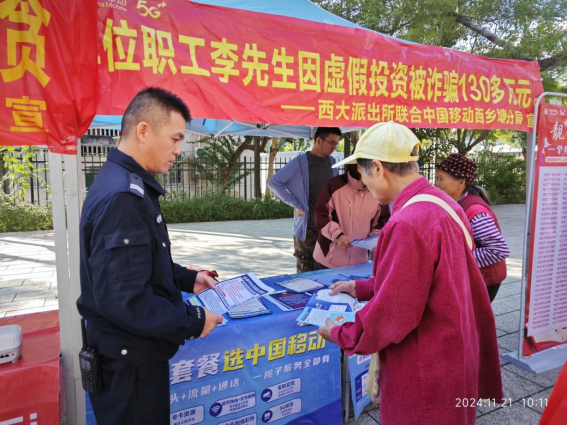 为进一步增强我校师生员工识骗防骗意识和能力,11月21日上午,保卫处联合西大派出所、西大社区、兴业银行在大学生活动中心东侧广场开展线下反诈宣传活动。
