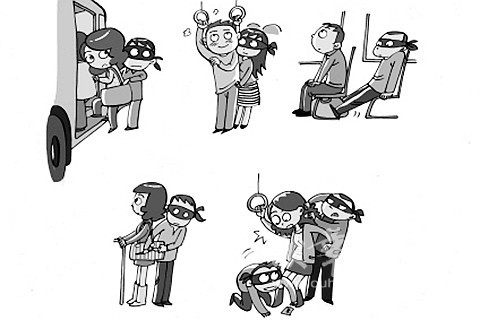 5、刀片作案。此类扒手往往不需要"夹枪",而是用剃须刀刀片来割破受害人的衣服,皮包等装钱物的部位,此类案件一般为二人以上作案,一个以身体遮挡来掩护另一个同伙下手,当你发觉身边老是有人挤你的时候,你就要注意观望了。