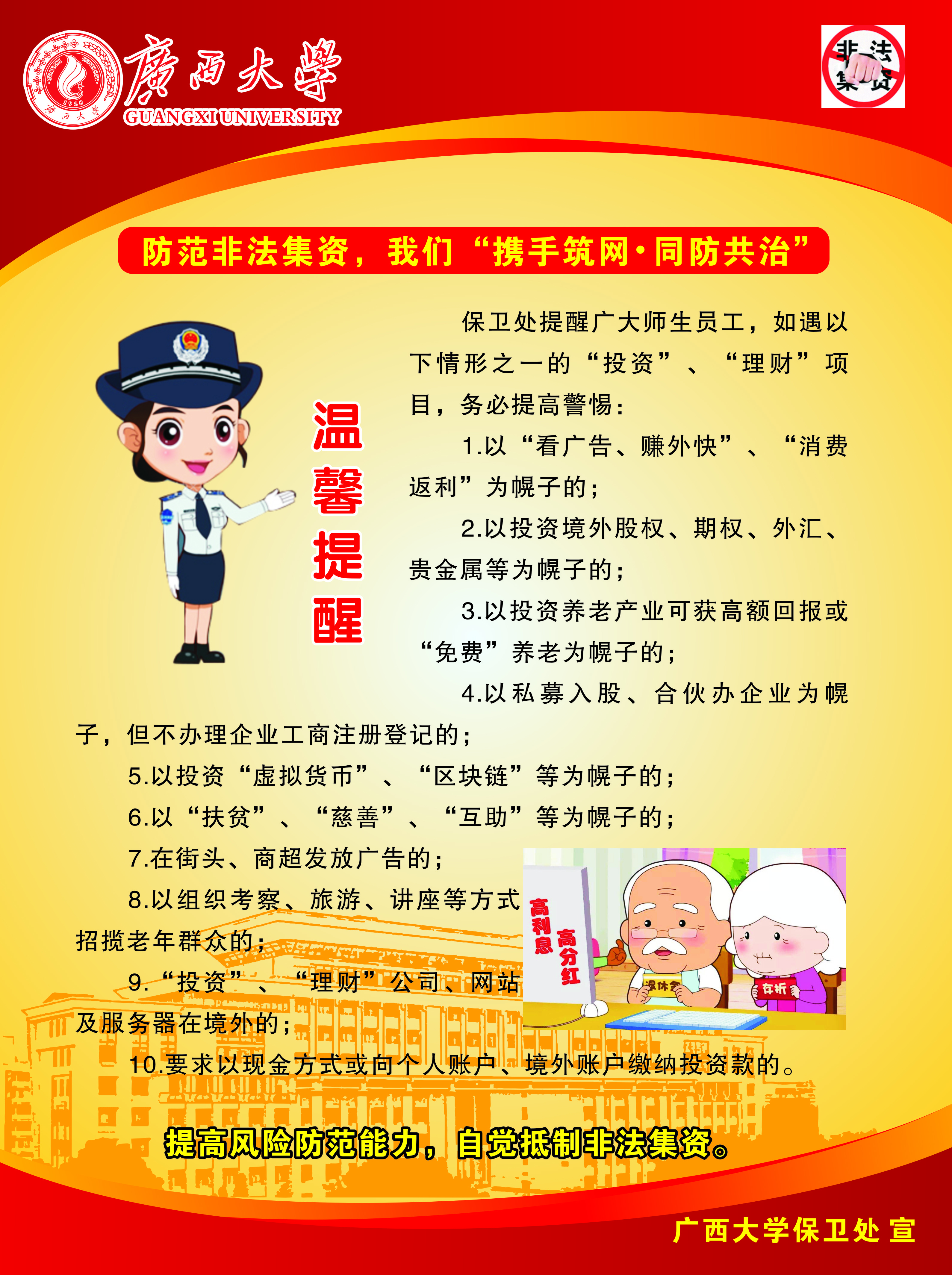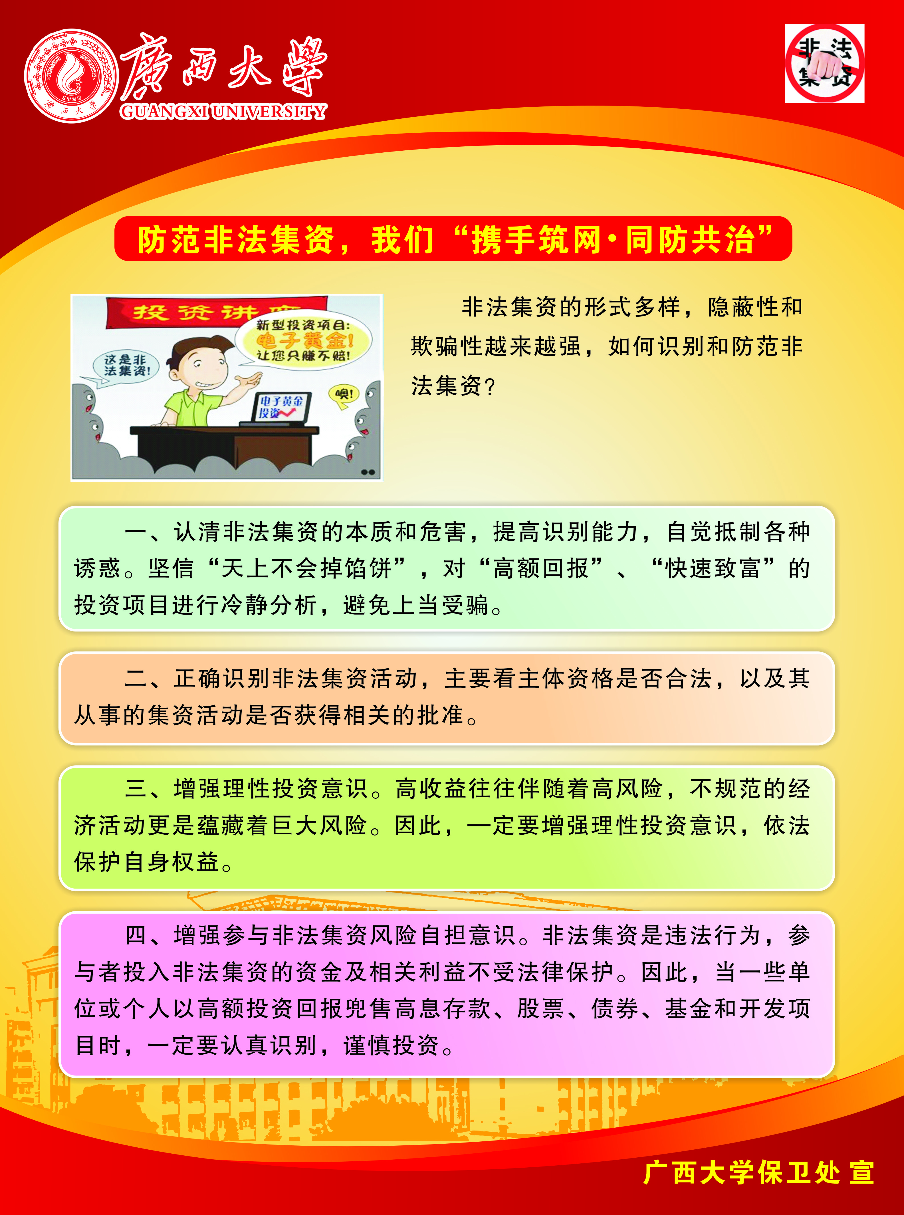 防范非法集资,我们“携手筑网·同防共治”宣传板报