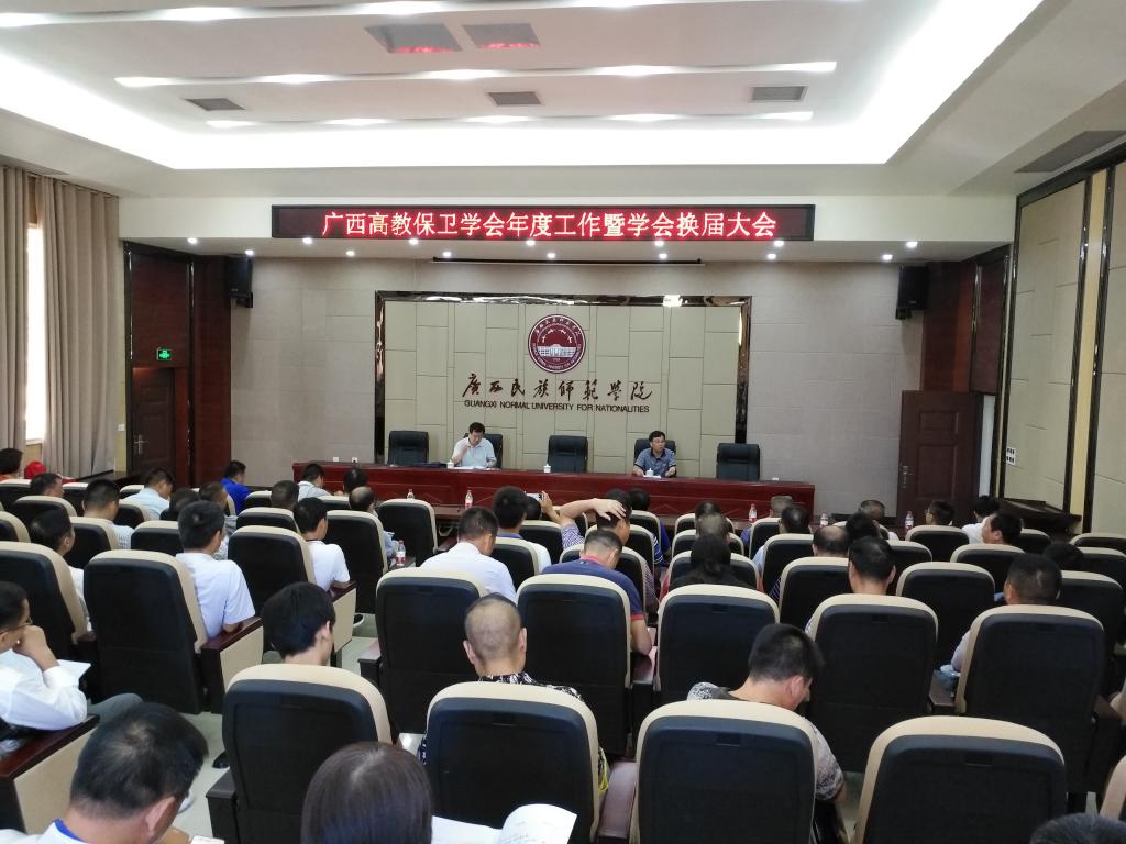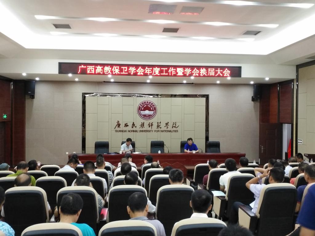 9月28日下午,广西高等教育学会保卫学专业委员会年度工作暨换届大会在广西民族师范学院理工楼一楼报告厅举行。自治区教育厅安稳处汪维处长、全区53所会员单位高校及部分非会员单位高校的保卫处(科)长参加了会议。会议由广西民族大学保卫处处长梁炳先主持。