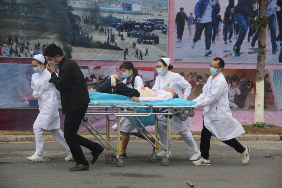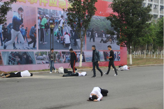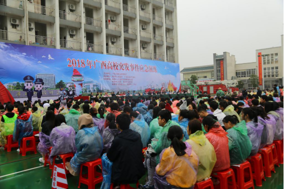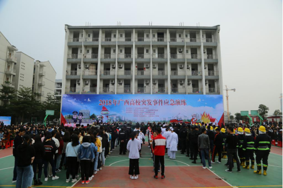 全区高校突发事件应急处置演练在广西科技师范学院举行12月6日上午,由自治区教育厅主办,来宾市人民政府和广西科技师范学院承办的2018年广西高校突发事件应急演练观摩活动在广西科技师范学院举行。广西教育厅安稳处副处长、调研员周献兴,来宾市人民政府副秘书长、市应急管理办公室主任唐桂伦,学校副校长蓝海,校长助理曾令宏以及来宾市公安局、来宾市消防支队、来宾市120急救中心、来宾市红十字会等领导出席并观摩了活动。自治区教育厅、全区各高校保卫部门领导和学校师生代表600多人观摩了演练活动。