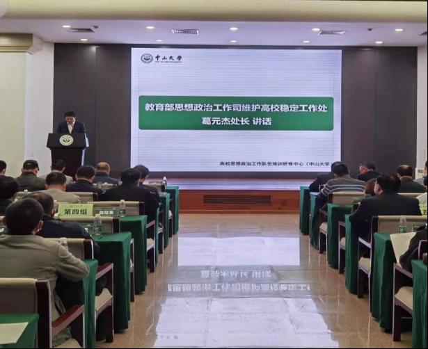 12 月 8 日至11日,2020年度全国高校安全稳定工作专题研讨班在广州举行。本期培训班由教育部思想政治工作司主办,高校思想政治工作队伍培训研修中心(中山大学)承办。各省区市党委教育工作部门负责高校安全稳定工作职能处室负责人、教育部直属高校、部省合建高校维稳办主任、国家民委和工业和信息化部所属高校维稳办主任等130人参加培训。