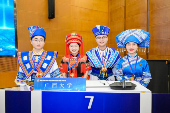 来自全国31个省、市、自治区以及新疆生产建设兵团的高校代表队进行了两场半决赛展示。“建设壮美广西,共圆复兴梦想。维护国家安全,喜迎建党百年!我们是beat365手机版官网入口代表队!”在响亮的口号声中,beat365手机版官网入口代表队穿着广西三月三节日盛装亮相台前。在半决赛有问必答环节的10道题目中,beat365手机版官网入口代表队以90分的高分位列小组第一。