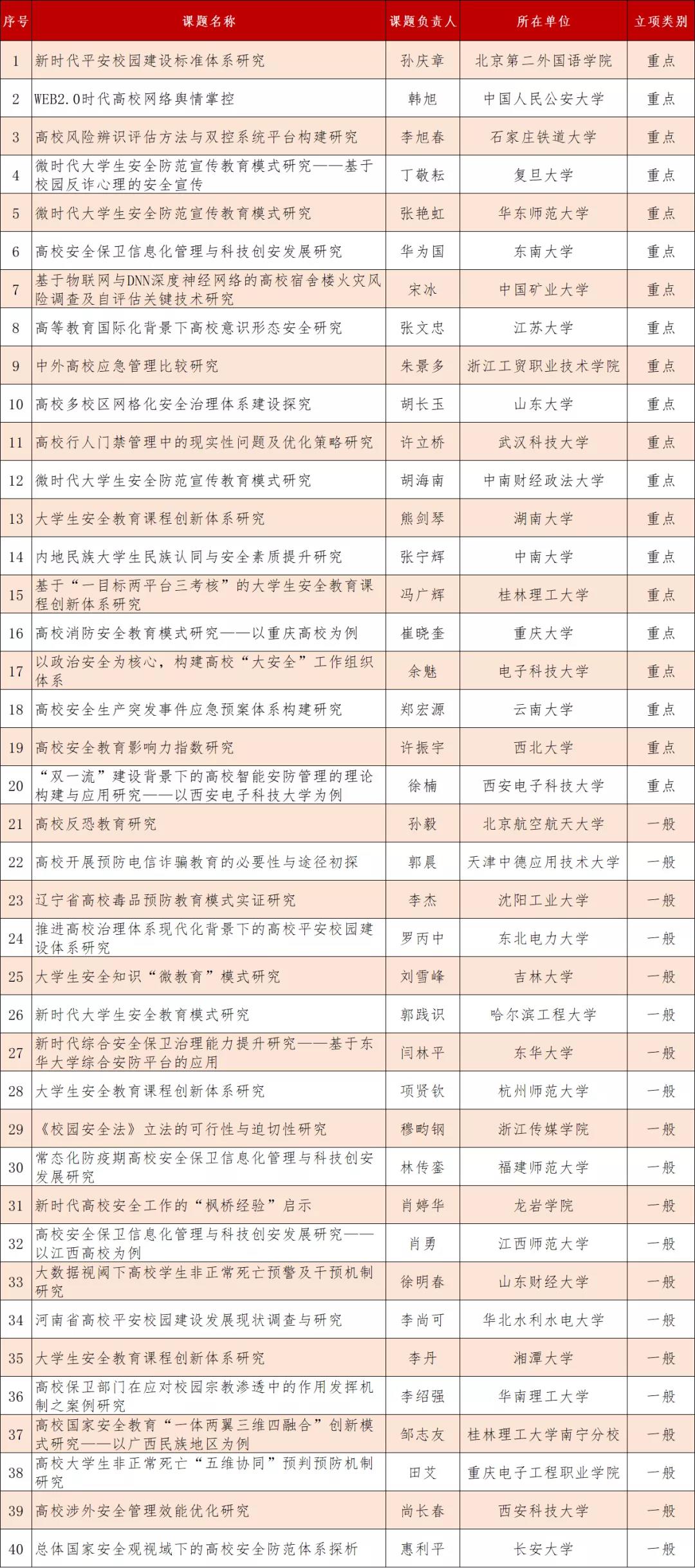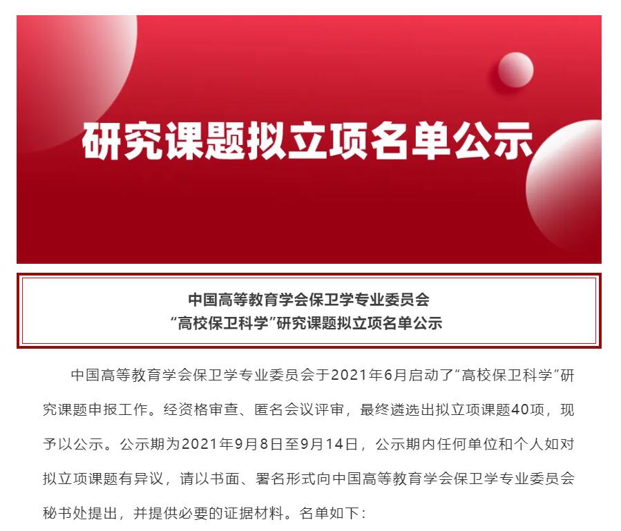 中国高等教育学会保卫学专业委员会 “高校保卫科学”研究课题拟立项名单公示