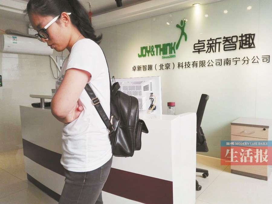多名大学生口中所说的“坑”,都指向卓新智趣(北京)科技有限公司南宁分公司(以下简称“卓新智趣”)。据多名学生报料称,该公司以提供高薪岗位为由,拉他们进公司参加所谓的“高价集训”,还给他们办理了分期贷款。11月16日,记者跟随这些学生,走进这家公司进行求证。