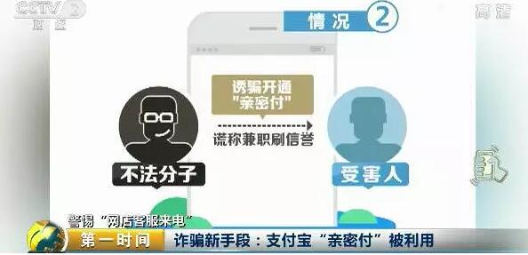 警方分析,不法分子通过非正规渠道获取受害者网购记录及联系方式等信息,一种情况是以网购商品已收货的人员为目标,冒充客服与当事人联系,以商品有质量问题可退款等为由,引导当事人按照要求在手机端开通“亲密付”实施诈骗。