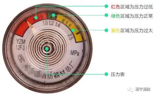 1、当压力表指针指到红色部分时,说明瓶内压力不够,灭火器不能正常使用。