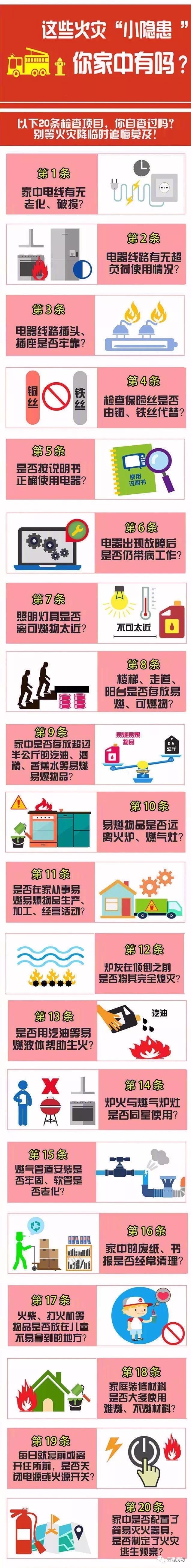 当前正值冬季,天干物燥,火灾频发,我们在关注其他问题的同时,殊不知隐患就在身边,防火,先从自家防起,先来看看你家是否安全,小伙伴们的安全意识到不到位呢?快来查一查你家安全吗?
