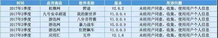 在今年前三季度,被曝光存在该类问题的APP就有6款: