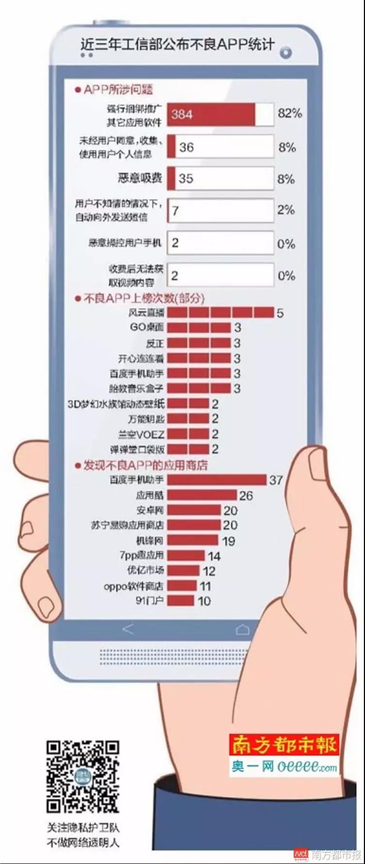 有记者统计了近三年被工信部曝光的问题APP,发现共有466个上榜。一些名称里带有“ROOT”和“Wi-Fi钥匙”的APP频繁出现在“黑名单”中。