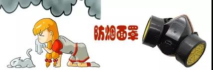 家中、公司、酒店应备有防烟面罩,如果没有防烟面罩,也可用毛巾、口罩捂住口鼻,浇湿衣物,弯腰低姿前行,避免吸入烟气。