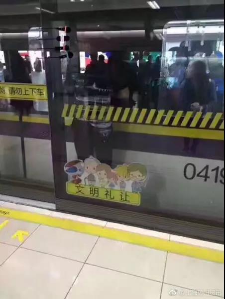 2017年4月20日晚高峰期间,一名男性乘客在低头看手机时,可能因该乘客突然发现乘错方向或坐过站,匆忙下车时导致其被夹在列车与屏蔽门间,所幸轨交4号线站台工作人员及时发现险情,再一次开启屏蔽门,最终帮助该男乘客“脱困”。