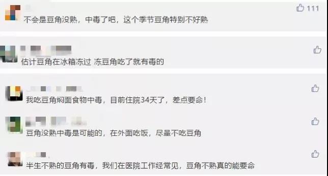 此事经媒体报道后,有“侦探”网友发现了端倪:不会是豆角没熟,中毒了吧。