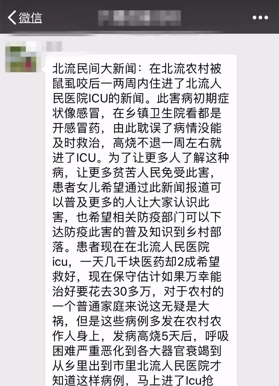 近日,北流一男子突发急病,被送往医院急救。有网传消息称,他是被鼠虱咬后才发病的。真相究竟是什么?