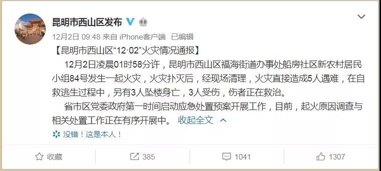 【昆明市西山区“12·02”火灾情况通报】