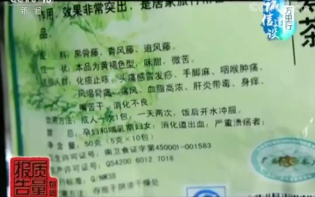 据我们调查,就是这一家李氏两父子的桂平市富吉利茶厂,他们生产的黑骨藤长寿茶销往全国14个省、直辖市,然后涉及到105家店家。