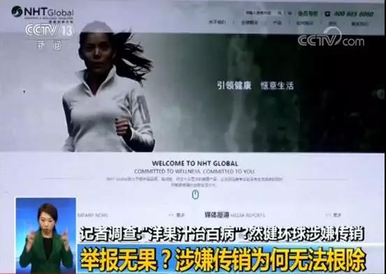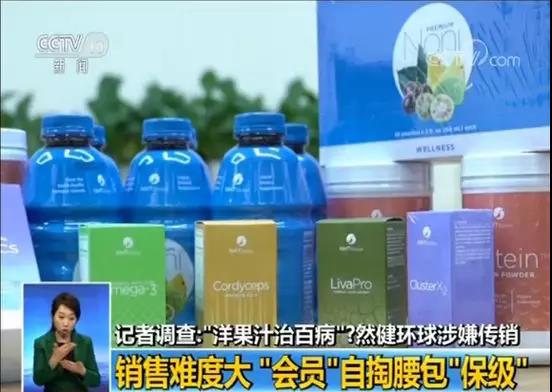 然健环球公司资深会员周女士:我们这个平台是叫NHT Global,natural health trend自然健康趋势,它到中国的名字叫然健环球,是一个全球会员积分制的网上超市,它属于复合电子商务。我们所有吃的东西全部是国外进口,这个(诺丽果汁)是属于膳食补充剂,这个是香港网站(销售)的。