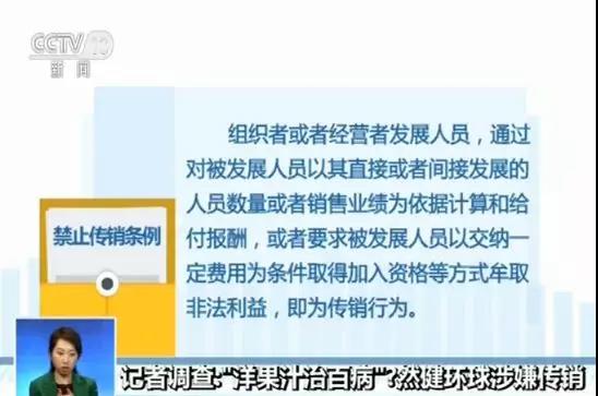 那么,涉嫌传销如何担责?我们国家法律法规如何规定?涉嫌境外执法和监管又有何困难呢?法律专家岳屾山表示,像这种以销售果汁为名,其实是拉人头挣钱的基本就是一种传销行为。传销并不是真正需要销售产品,而是根据拉人头,根据层级确认收入。情节严重就会触犯刑法。在我国以推销商品为名,要求参加者缴纳费用或者购买商品服务这种方式,并按照一定的层级直接或者间接发展成员数量作为计酬或者发钱的依据,引诱或胁迫参与者参加扰乱社会经济秩序的传销行为,将处以五年以下有期徒刑或者拘役,并受处罚金,情节严重的处五年以上有期徒刑并处罚金。这里要注意的是,我们国家针对传销的处罚是针对领导者和组织者,在传销中承担策划、发起、宣传、培训等的人员,或者对扩大组织有直接间接作用的人员。一般来说传销参与人员在30人以上,而且层级在三级以上的,就可以对其组织者追究刑事责任了。现在有些传销是从境外传进来的,我们要看他是否在境内实施了传销活动,如果有则将追究责任,如果指挥的人在境外,还将联合国际刑警一起展开调查追责。