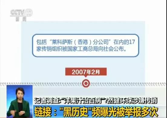 实际上,“然健环球”被曝光涉嫌传销,远非“第一次”。这家公司此前已因涉嫌传销而多次被查处。早在2004年4月,中央电视台《经济半小时》节目就曾曝光“然健环球”涉嫌传销案;当时这家公司还不叫这个名字,而是以“雷克瑟丝”自称。(2002年,“雷克瑟丝”(Lexxus International Co.,Ltd.)向中国大陆渗透,并获得了飞速发展。2004年4月,《经济半小时》节目以《地下雷克瑟丝,“套”你没商量》为题,曝光了然健环球涉嫌传销案,随即全国各地陆续曝光了大量类似传销案件。然而在这之后,当年5月,该公司又向国家工商总局申请注册了“莱科萨斯国际(中国)有限公司”,正所谓“换汤不换药”,更名后仍不断曝出被各地工商部门以涉嫌网络传销被立案查处的消息。