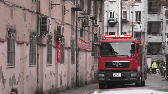 消防车呼啸着警笛一路畅行直达目的地
