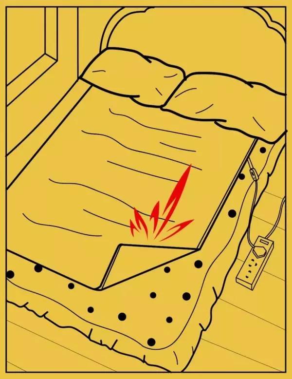 电热毯严禁折叠使用,防止电热丝损坏发生事故;折叠使用或有严重折痕的电热毯容易起火燃烧,因此,即使在保管的过程中也要注意折缝的位置不能重压。