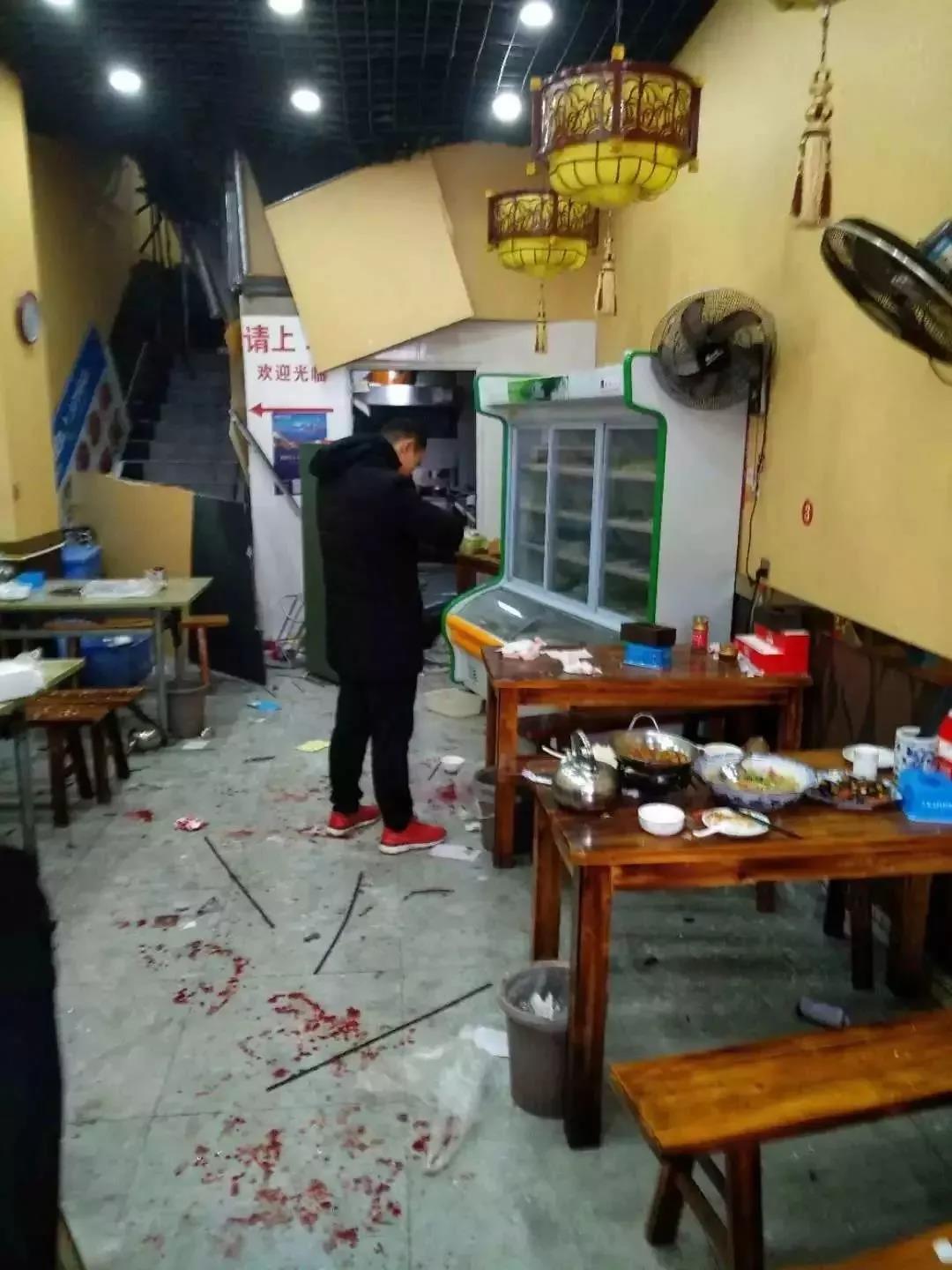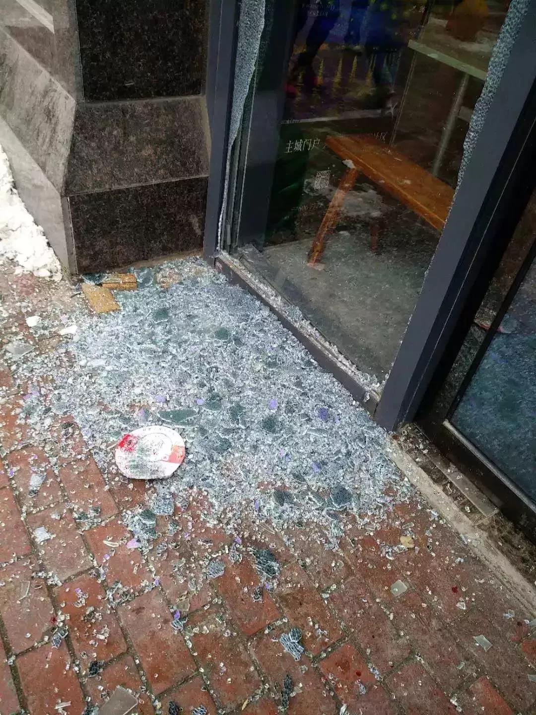 (现场玻璃门被炸碎)