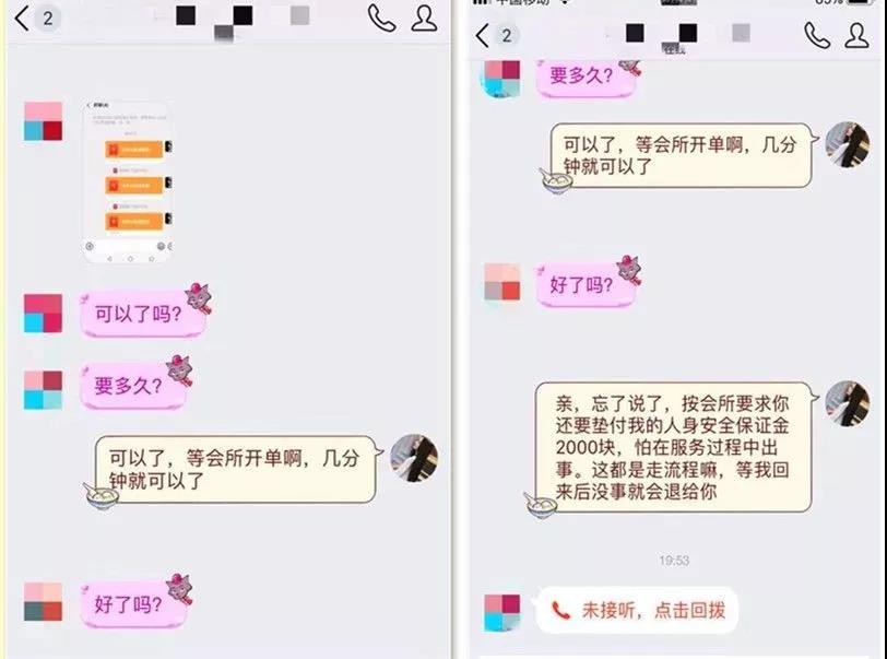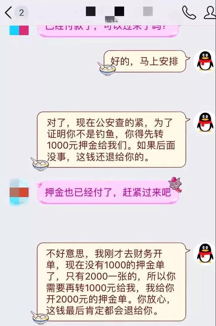 转账后,小李同学到一酒店开好房间,静等“小妹”上门,但此时,对方要求再交1000元“风险押金”才能安排“小妹”过来。