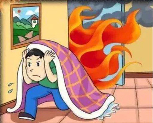 人们经常可以看到这样的漫画:火灾发生时,某人披着打湿的棉被逃离火场。这是对居民住宅楼火灾逃生很大的误导。这幅漫画起源于第二次世界大战后的日本。当时日本住宅的主流建筑是小栋木结构建筑。这种房屋在发生火灾时木构件会从屋顶上掉下来,于是人们就想出披着打湿的棉被逃离火场的方法。