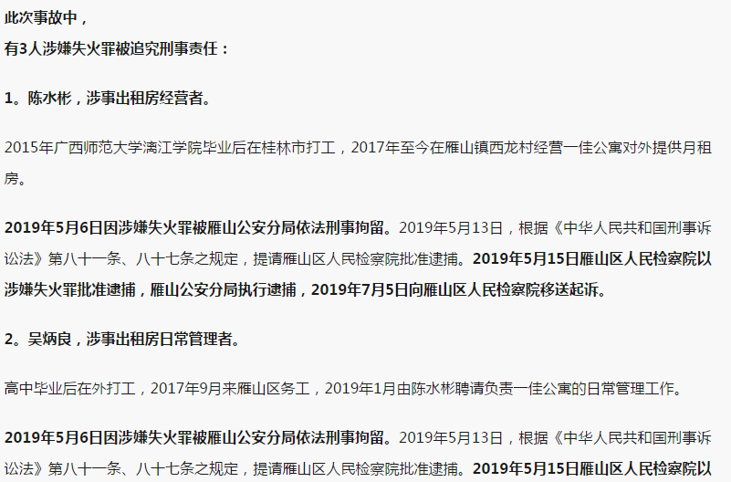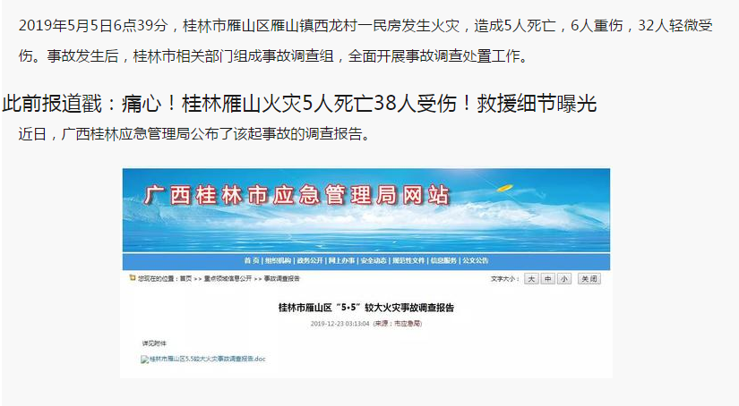 查清了!桂林雁山火灾致5人死亡38人受伤 3人被追刑责