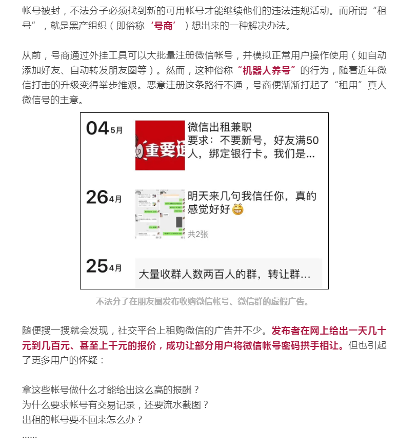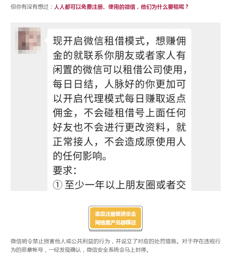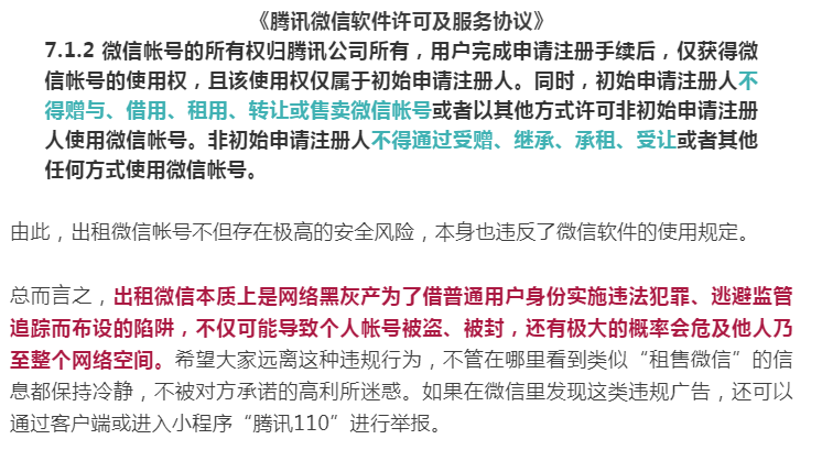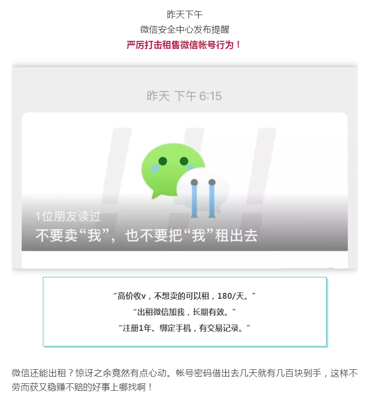 出租你的微信,一天能挣180?微信发布重要提醒