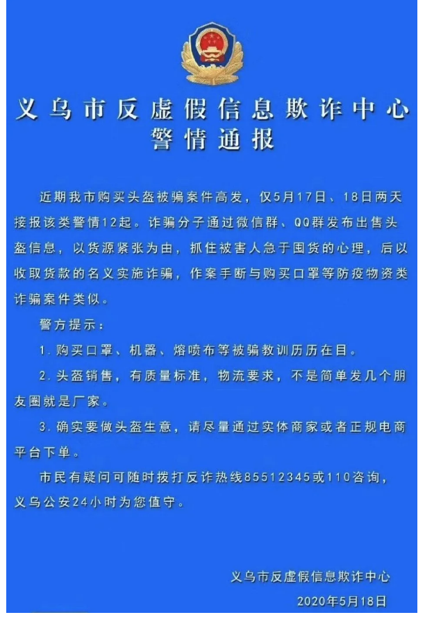 卖口罩的人开始改卖头盔了…紧急提醒:头盔虽火,谨防诈骗!