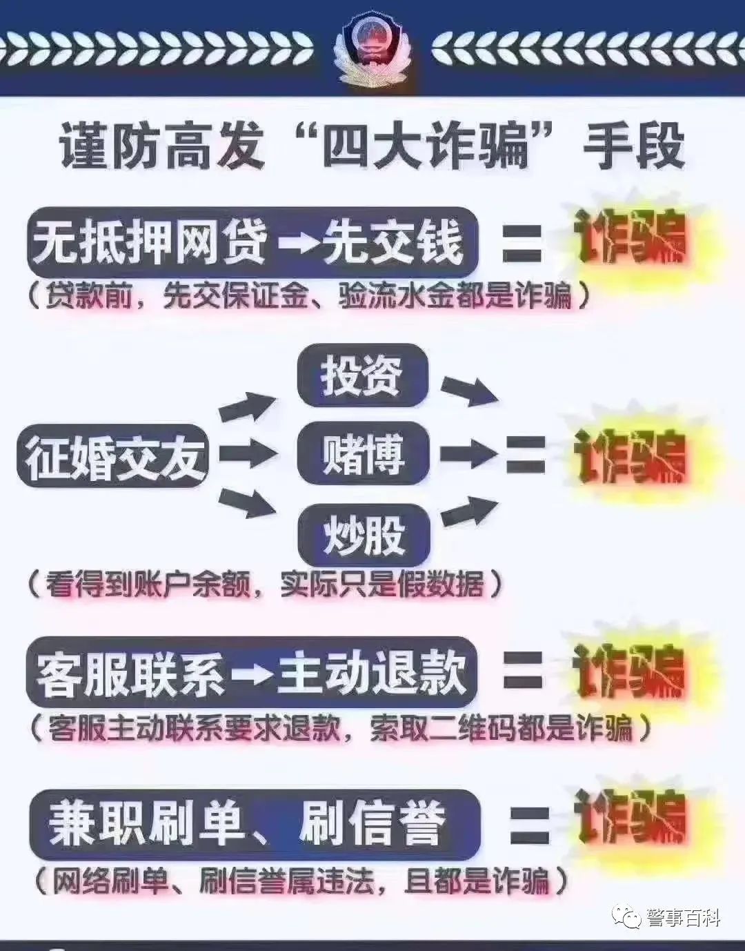 这张由「南京公安」制作的宣传图,汇集了当下中国最常见的58种电信网络诈骗手法,堪称悬在诈骗犯罪分子头上的达摩克里斯之剑,反诈宣传工作最得心应手的武器。