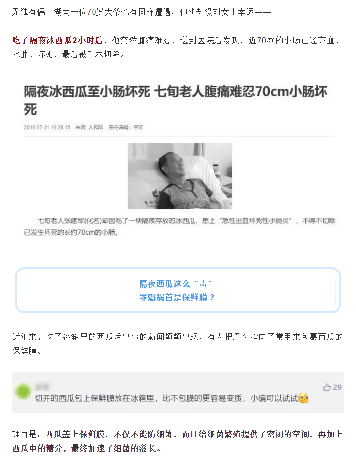 一块冰西瓜下肚,竟导致小肠坏死!隔夜西瓜还能吃吗?