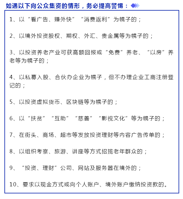 防范非法集资丨如遇以下向公众集资的情形,务必提高警惕
