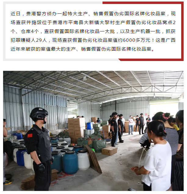 贵港公安侦办一起特大生产、销售假冒伪劣国际名牌化妆品案
