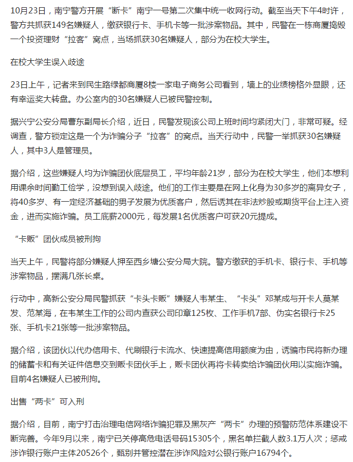 南宁警方开展“断卡”收网行动 一些在校大学生勤工俭学误入歧途