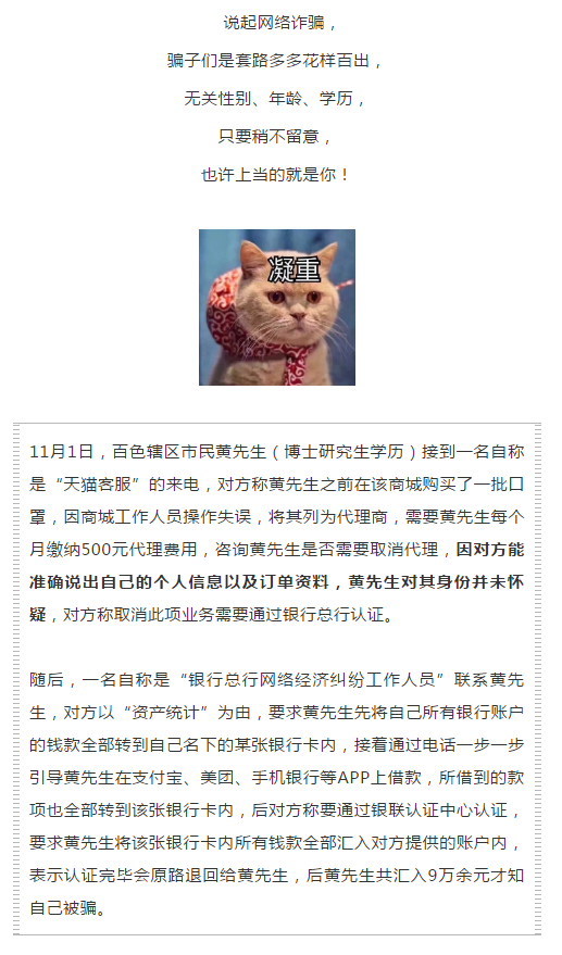 重要提醒!百色一博士生被骗9万元,一个月内已有多人上当