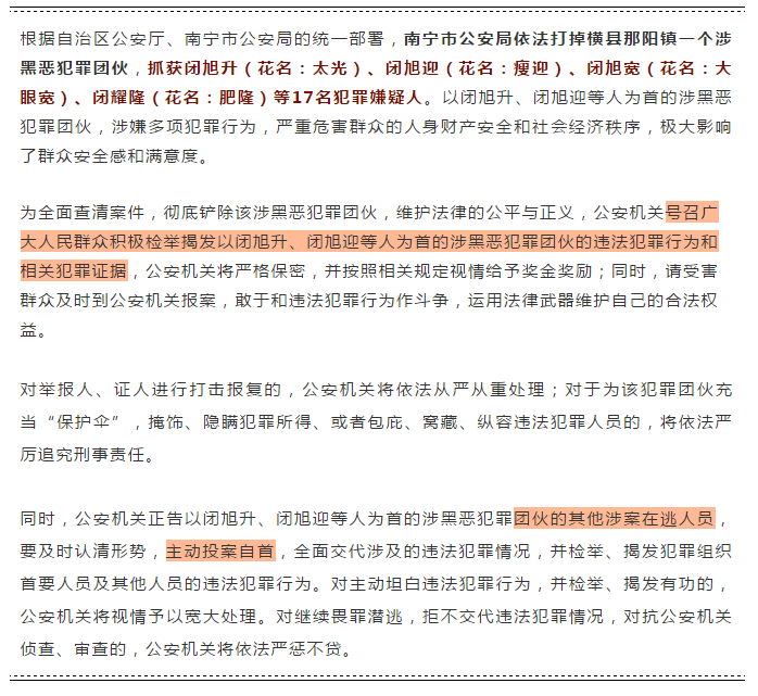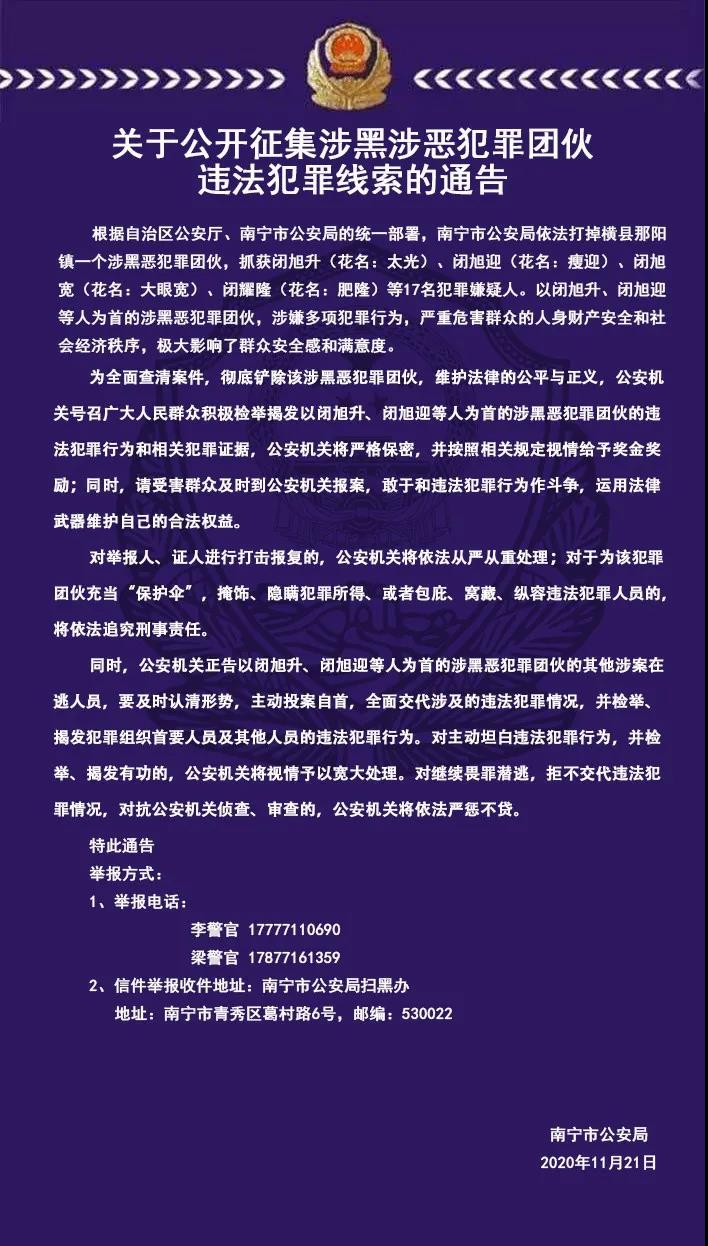 警方打掉闭旭升等人涉黑恶犯罪团伙,现公开征集该团伙犯罪线索!