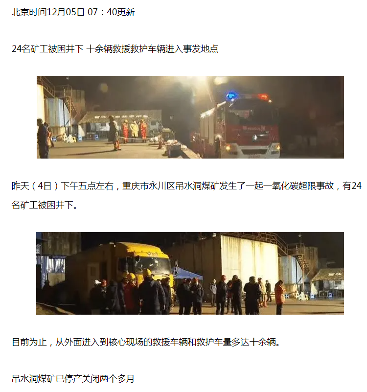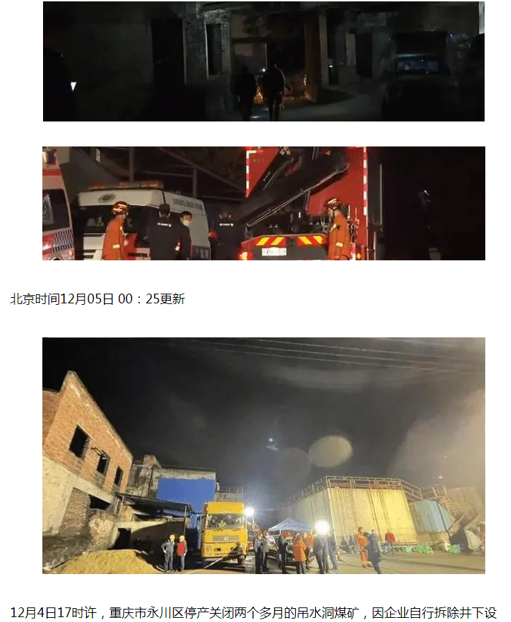 重庆永川一煤矿发生一氧化碳超限事故致18人遇难