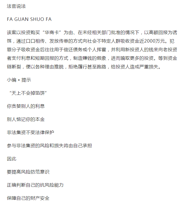 防范非法集资丨拒绝高利诱惑 远离非法集资