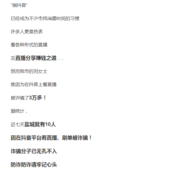 净网2021 “我就是刷个抖音看直播,就被骗了3万多...”盐城7天10人被诈骗!